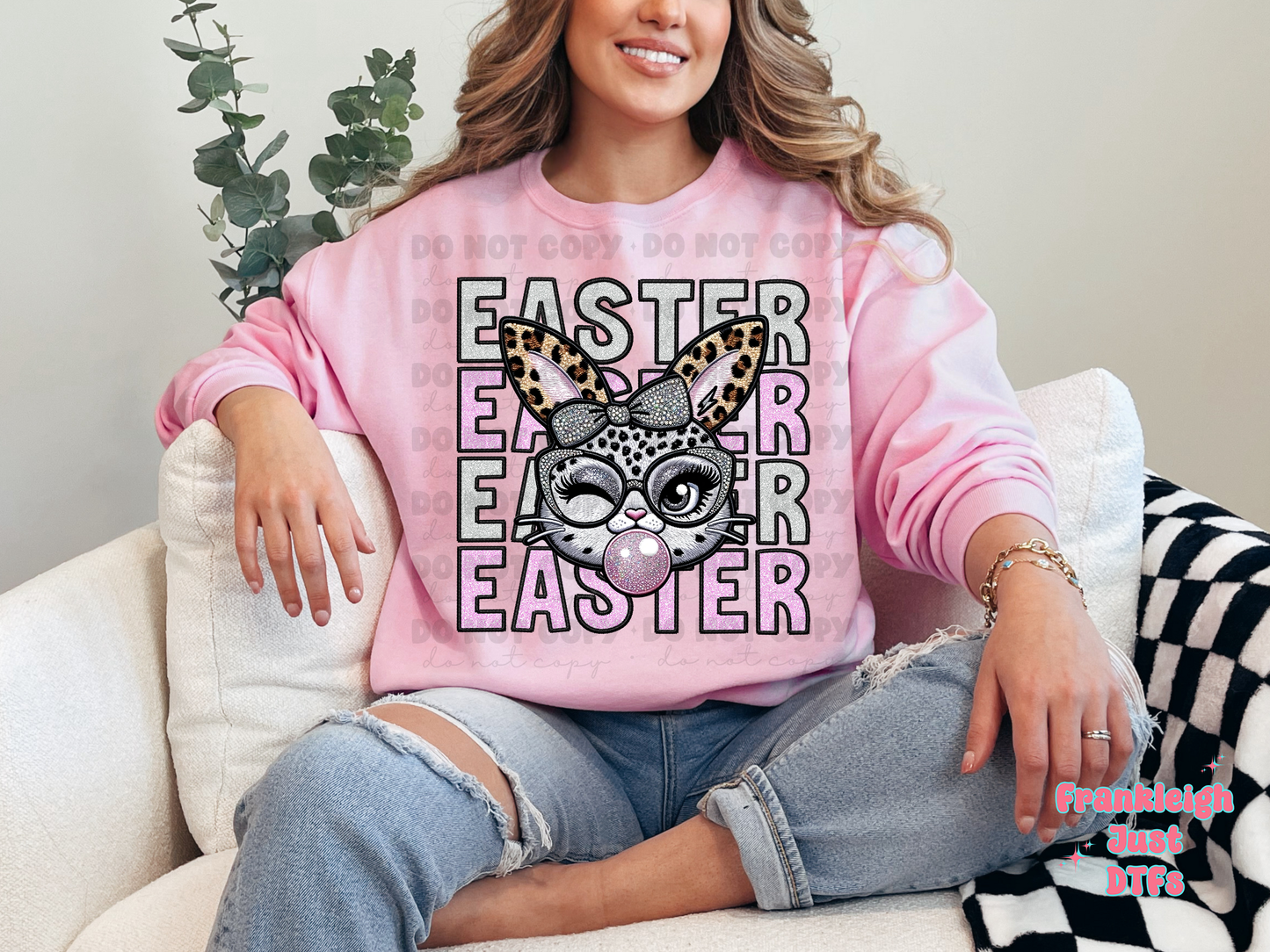 Easter Stacked Girl Bunny Blowing Bubble