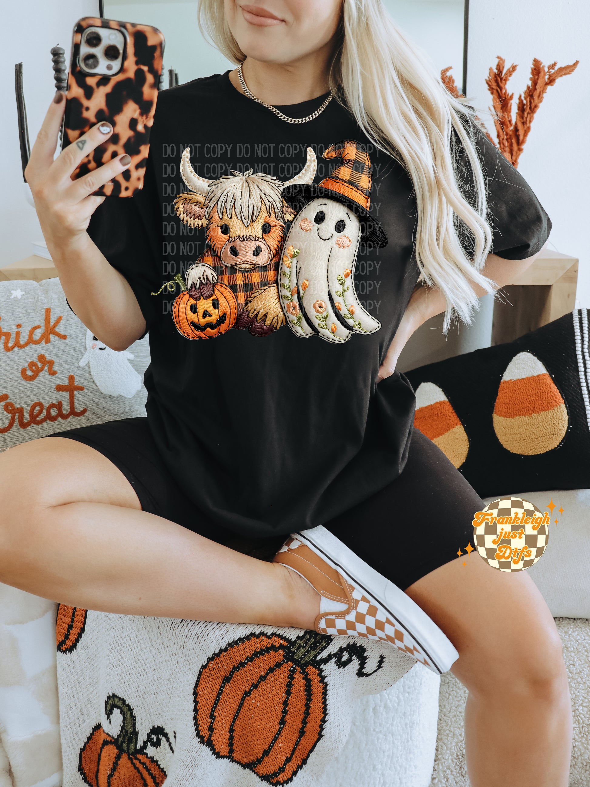 Highland Cow and Ghost Faux embroidery